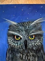 Acrylic Oil and Graphite painting on Wood “Owl in Starlight” by Sheila Cameron copy copy