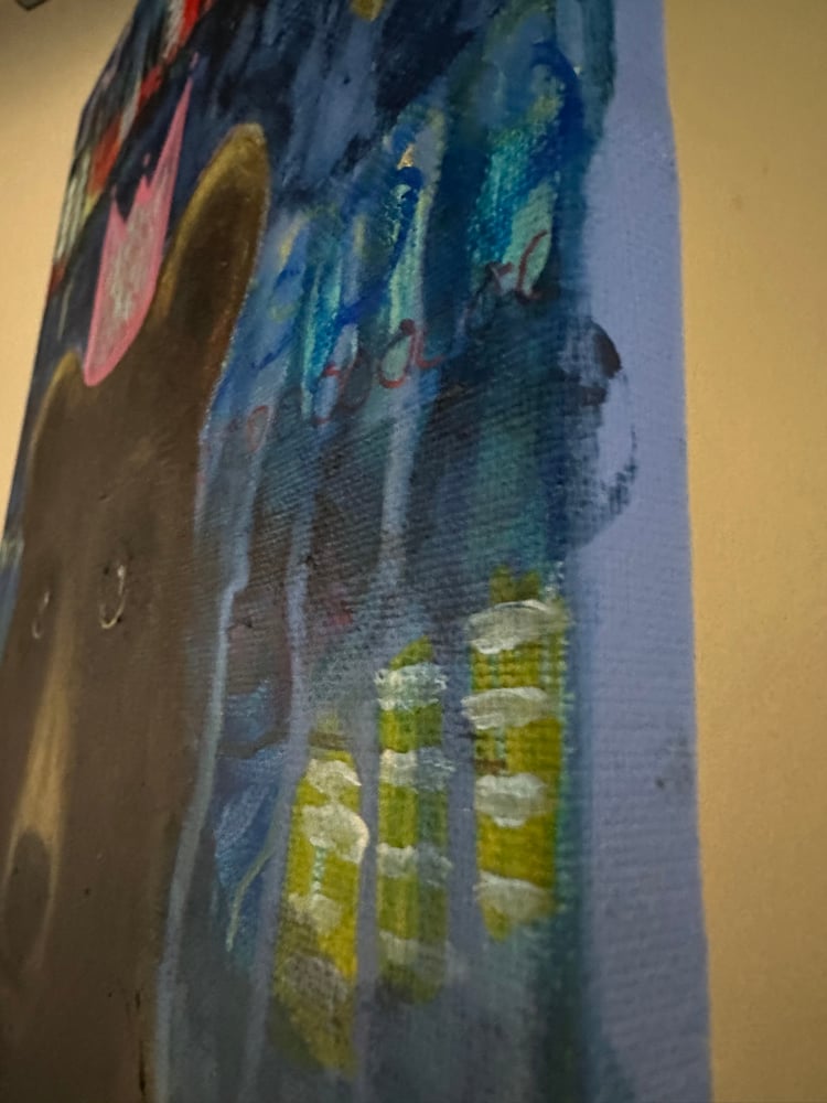 Mixed media on canvas.