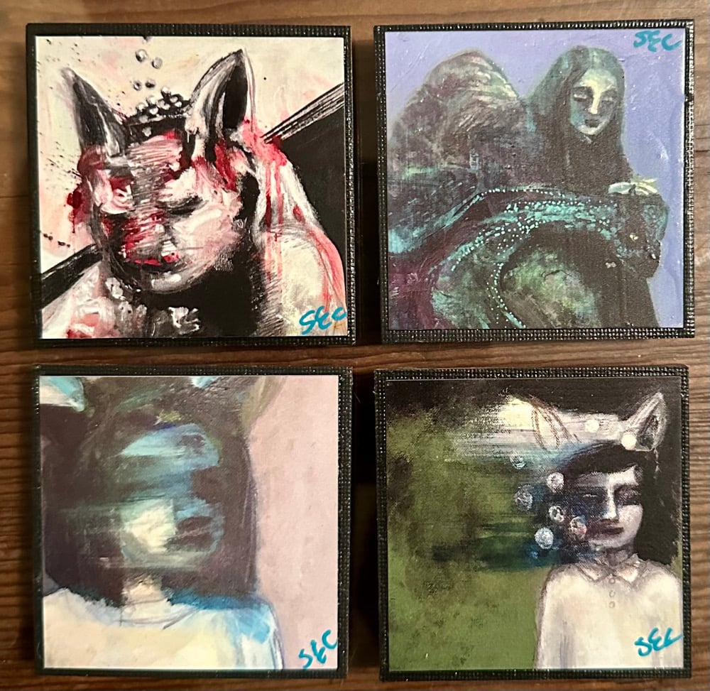 Women and Dragon Signed Art Magnets Set of 4