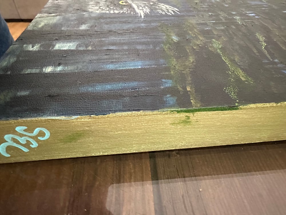 Signed and painted on the side. Wired on the back and ready to hang.