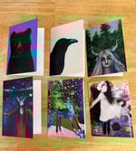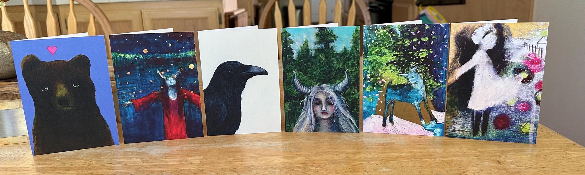 Set of 6 Note Cards. Box signed by the artist. Birds, Bears, Magical Women with Powerful Horns B...