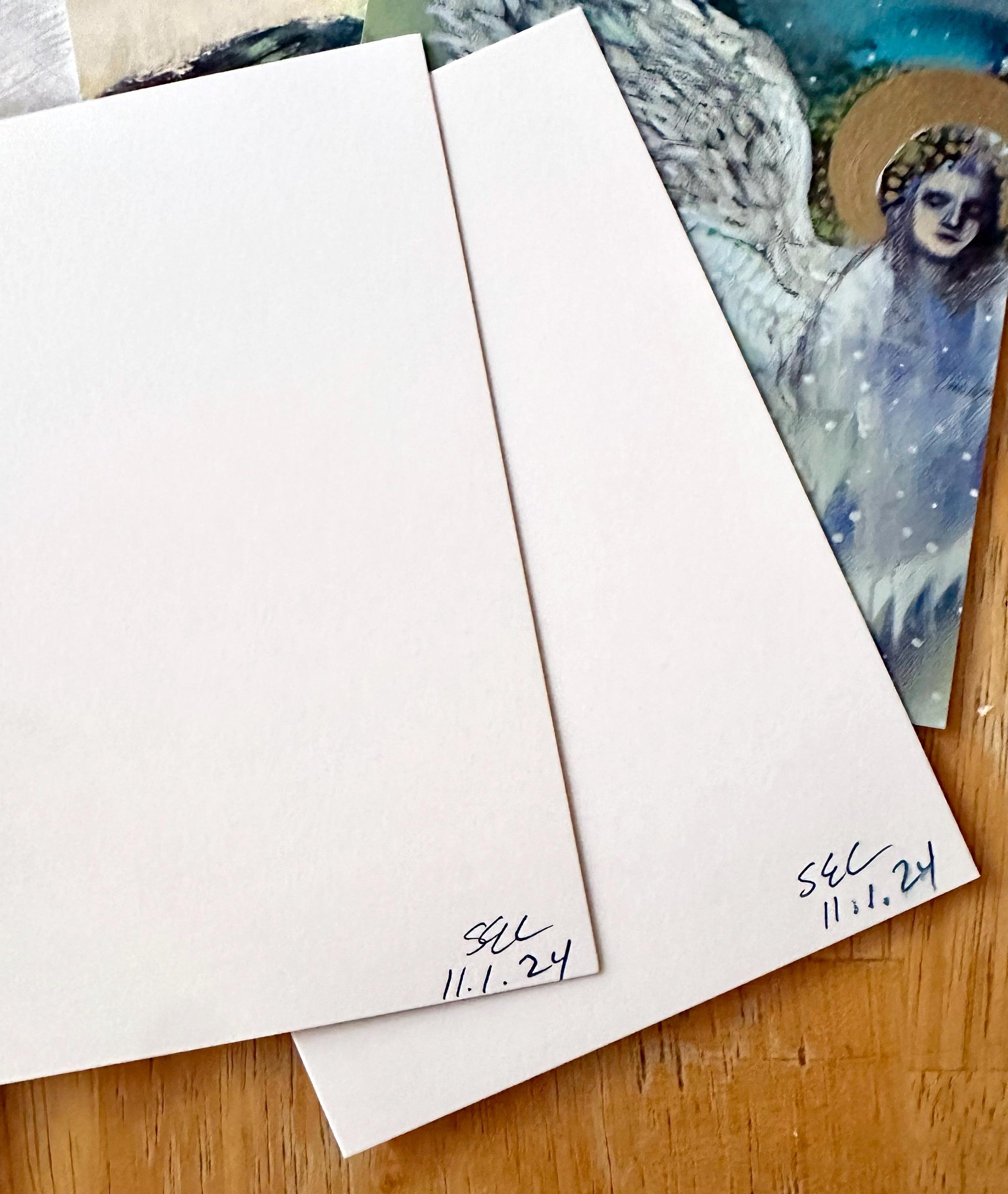 Original product name: Set of 8 Signed on the back by Artist Print Postcards. Boxed with Envelopes. Angels, Bear, Cat, Deer, Satin finish 4.13" x 5.83"