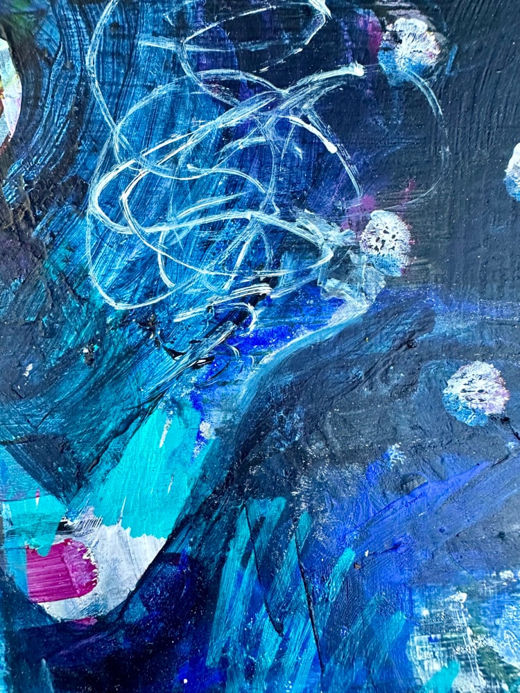 "That Demon Is Me” 8” x 8” Oil Acrylic Graphite on Wood